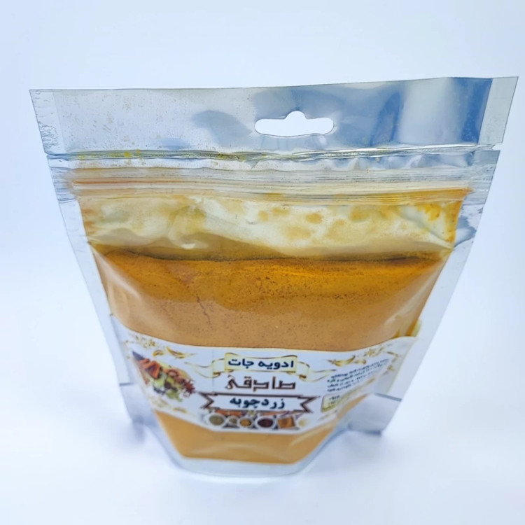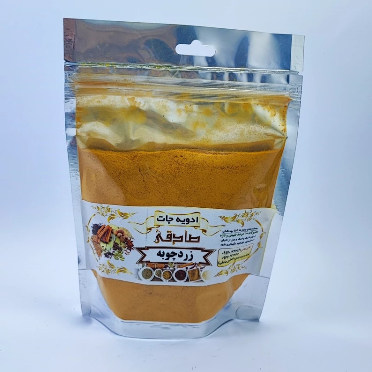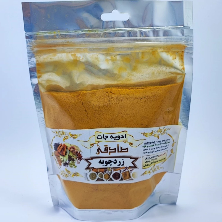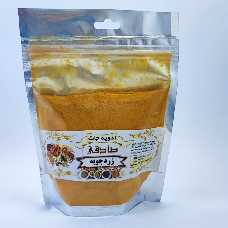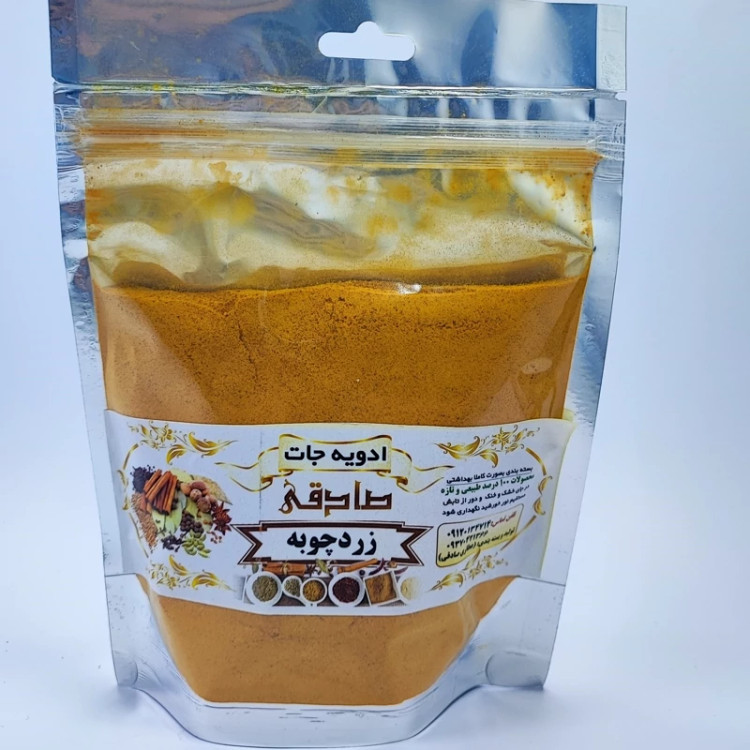 پودر زرد چوبه اعلا بهترین رنگ و عطر زعفرانی (عطاری آقای صادقی)