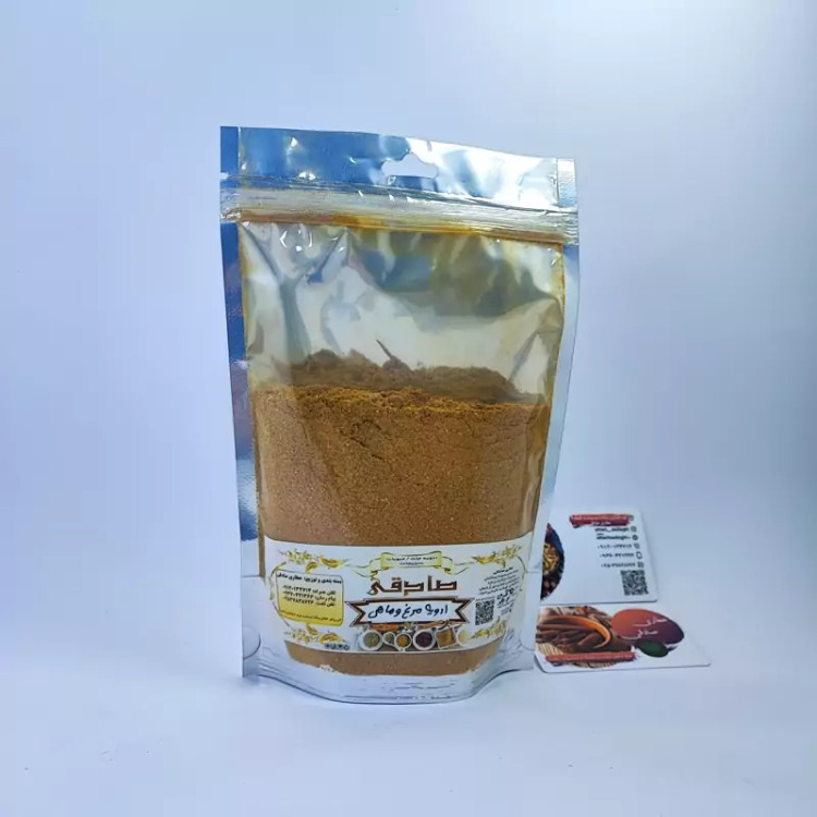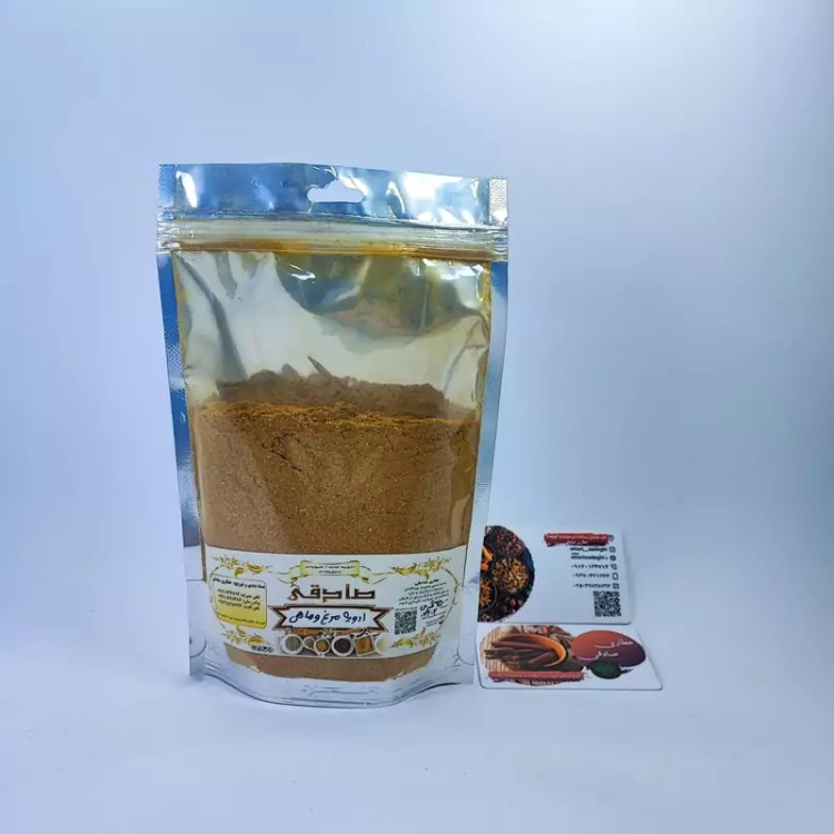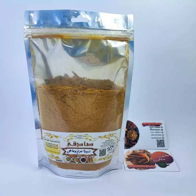 ادویه مرغ و ماهی عطاری آقای صادقی از ادویههای تازه، خالص و بدون افزودنی یا رنگ مصنوعی تهیه شده و مناسب مصرف خانگی و رستورانی است.