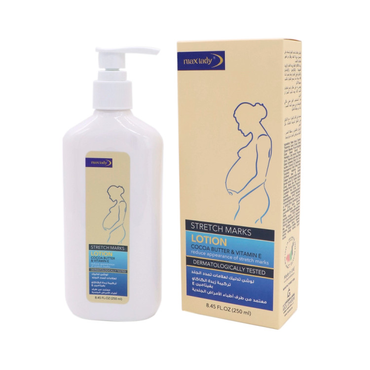 🧴🌰 لوسیون ضد ترک پوستی مکس لیدی Mex Lady با کوکوآ باتر و ویتامین E | نرمکننده، تغذیهکننده و کمک به بهبود ظاهر ترکهای پوستی